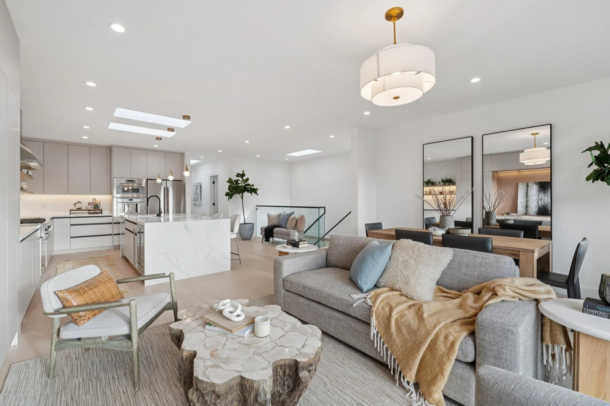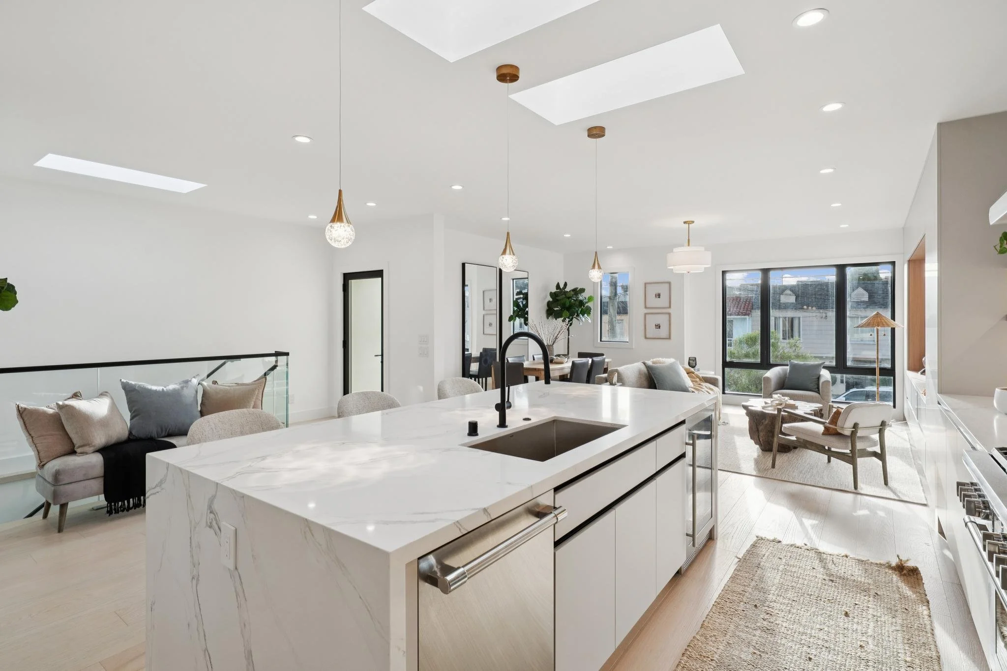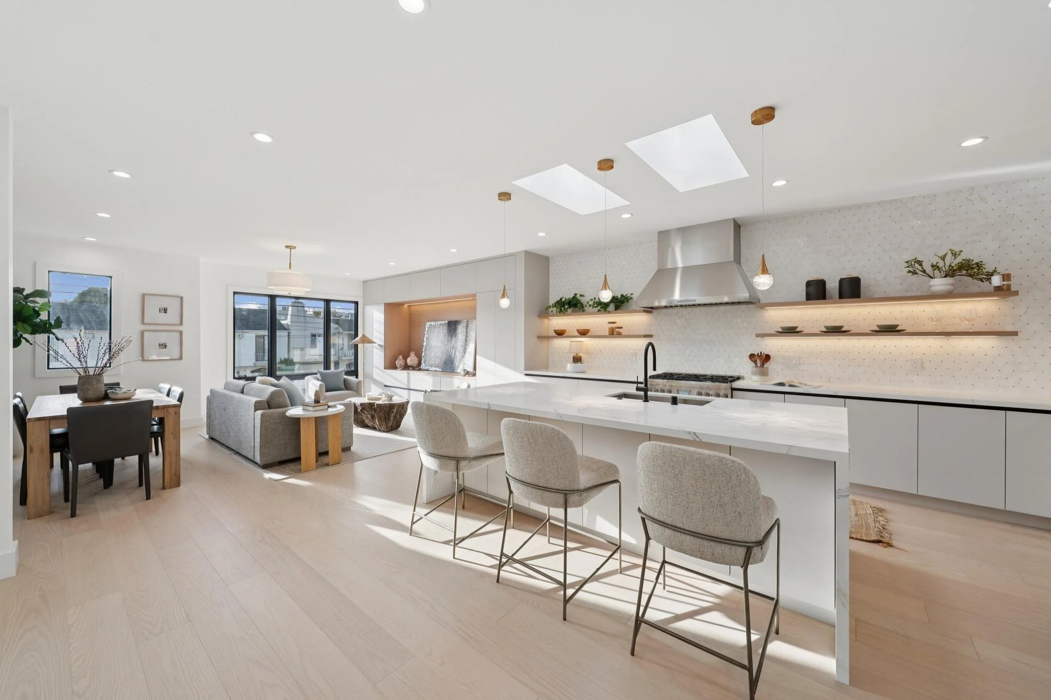 Welcome to 1726 30th Ave - a spectacularly remodeled 4BD/4.5BA home with sleek finishes, superb craftsmanship, and a beautifully landscaped yard! An open floorplan and stately great room greet you upon entry. The living areas are flooded with natural light through the various Marvin windows and skylights. The true star of the show is the expansive kitchen featuring cutting edge Thermador appliances and built in espresso machine, custom European cabinets, and elegant backsplash tiles. The masterfully designed half bath sits conveniently off the hallway and boasts floor-to-ceiling wood cabinets. Continuing through the upper level, you'll find 2 large en-suite bedrooms with access to a large deck overlooking the tranquil backyard. The lower level offers ultimate flexibility for guests or in-laws with 2 additional beds and baths, a wet bar, and a versatile open space for a home office or kids' play room! This standout home is outfitted with brand new systems including underfloor radiant heat, 200amp electrical upgrade, electric car charger, a new roof, and much much more. Ideally located near Golden Gate Park, Ocean Beach, top-rated schools, tech shuttles, grocers & eateries on Noriega, Judah, & Irving, this Sunset gem is an absolute treasure!