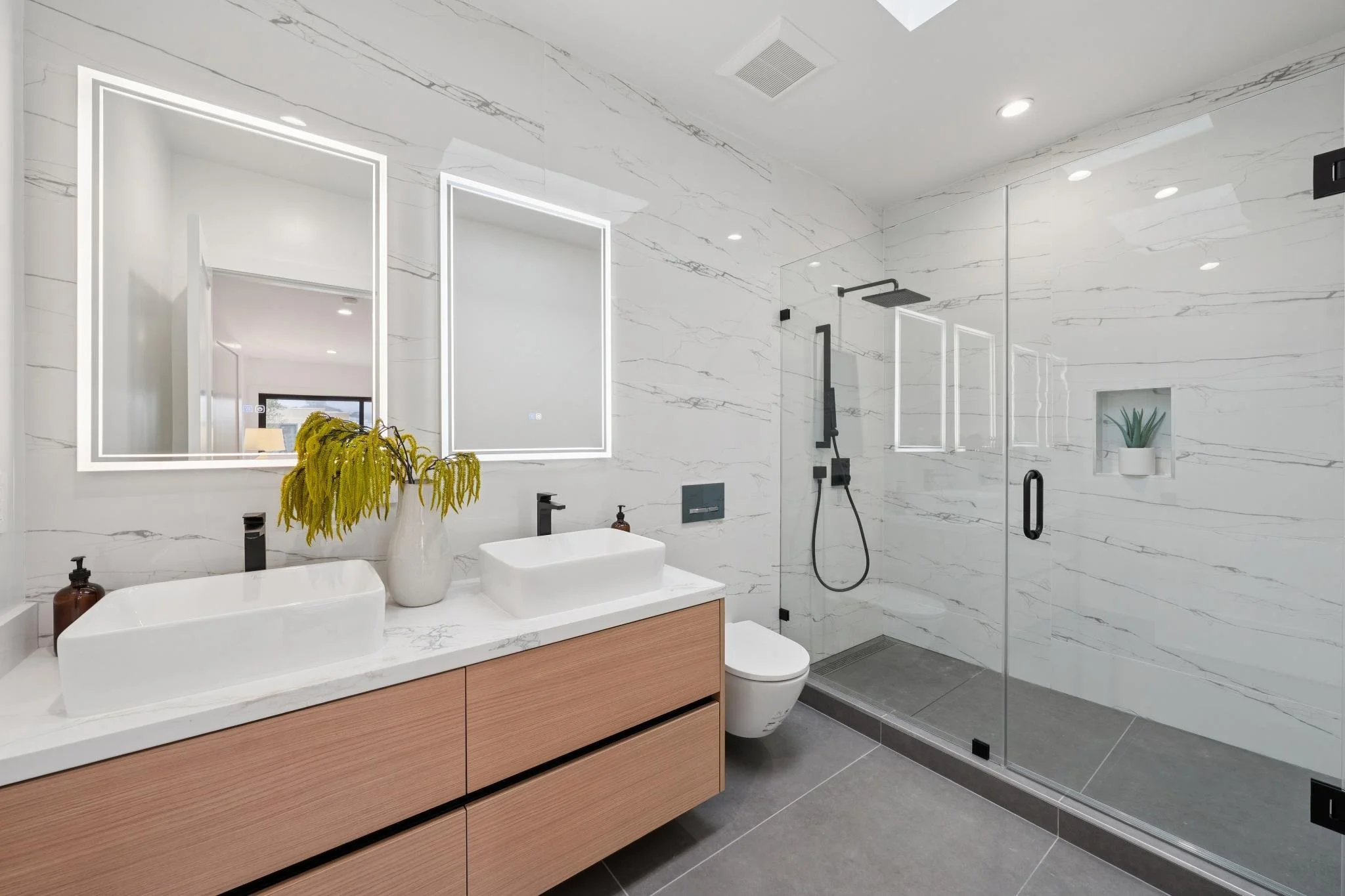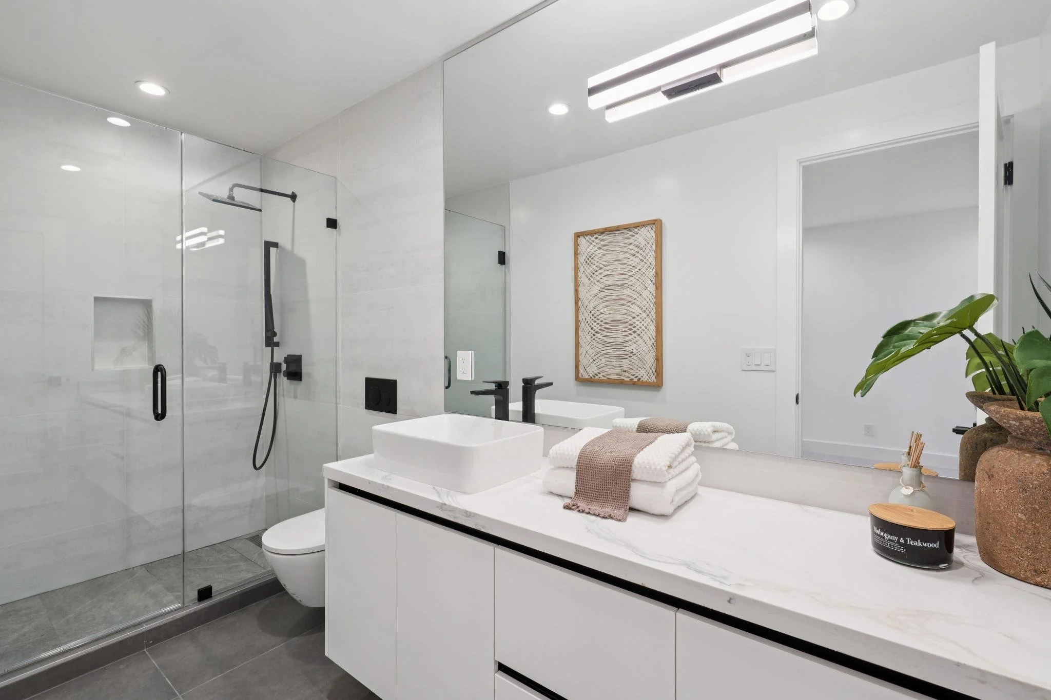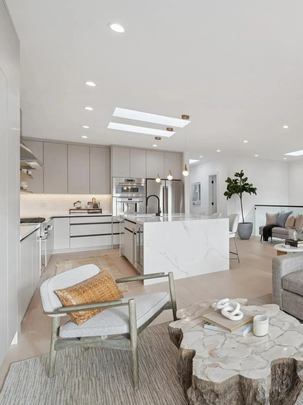 Welcome to 1726 30th Ave - a spectacularly remodeled 4BD/4.5BA home with sleek finishes, superb craftsmanship, and a beautifully landscaped yard! An open floorplan and stately great room greet you upon entry. The living areas are flooded with natural light through the various Marvin windows and skylights. The true star of the show is the expansive kitchen featuring cutting edge Thermador appliances and built in espresso machine, custom European cabinets, and elegant backsplash tiles. The masterfully designed half bath sits conveniently off the hallway and boasts floor-to-ceiling wood cabinets. Continuing through the upper level, you'll find 2 large en-suite bedrooms with access to a large deck overlooking the tranquil backyard. The lower level offers ultimate flexibility for guests or in-laws with 2 additional beds and baths, a wet bar, and a versatile open space for a home office or kids' play room! This standout home is outfitted with brand new systems including underfloor radiant heat, 200amp electrical upgrade, electric car charger, a new roof, and much much more. Ideally located near Golden Gate Park, Ocean Beach, top-rated schools, tech shuttles, grocers & eateries on Noriega, Judah, & Irving, this Sunset gem is an absolute treasure!