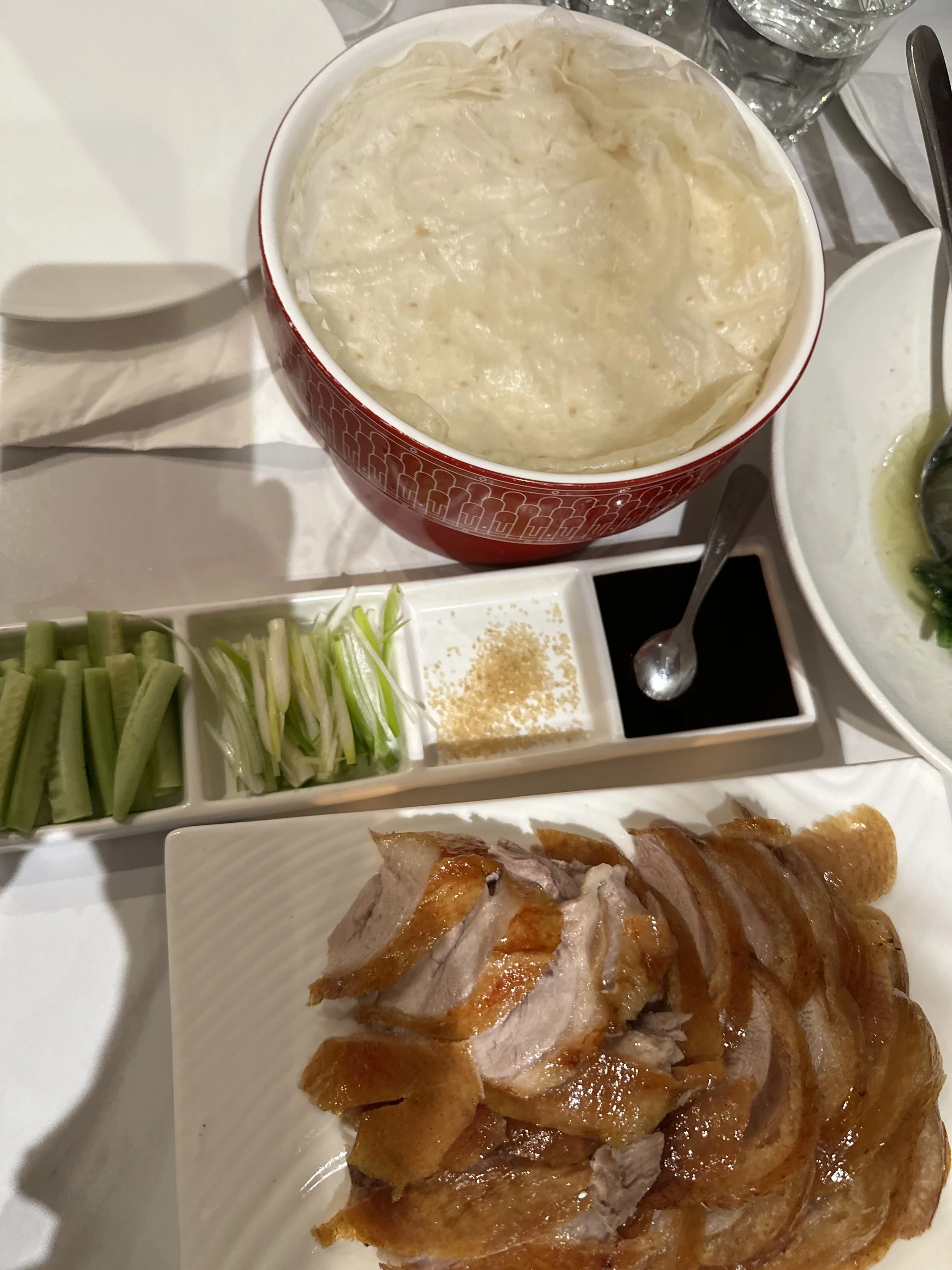 Z&Y Peking Duck is the more elevated sister of the original Z&Y Restaurant across the street. Although there were some open tables when we arrived, it filled up quickly for dinner service! I suggest making a reservation and letting the restaurant know you would like a Peking duck for dinner because we were told they sell out daily. The restaurant pre-plans their allotments for the day with less than a handful to spare because authentic Peking duck is an artfully prepared delicacy. We ordered a few basic accompaniments like a clear broth soup, steamed veggies, chicken fried rice, and 2 helpings of XLB soup dumplings. All spectacular, but the star of the show was the Peking duck. Perfectly prepared, the lean meat and crispy golden brown skin was very different from the Cantonese style duck we’re used to. The dish is served hot on a small ceramic platter over flames and comes with very thin crepe-like wraps, not soft steamed buns. Less carbs and more room for the good stuff! It’s a 10/10 in my book.
